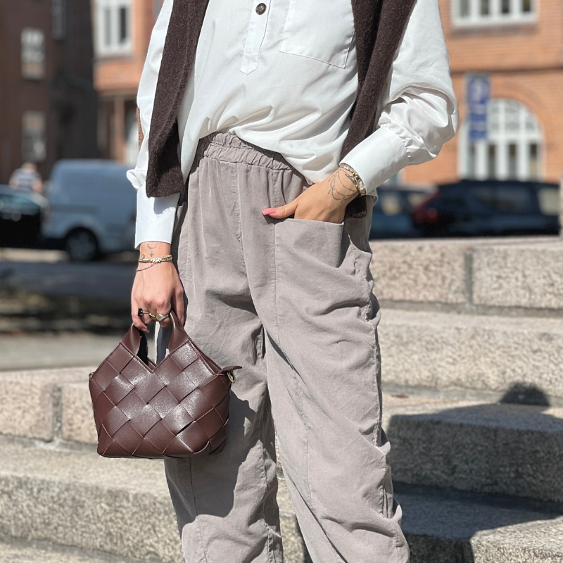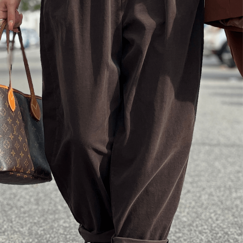 Nella | Pantalon en Velours Fango pour Femme – Poches Avant & Taille Élastique