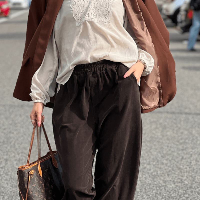 Senzy | Pantalon en Velours Côtelé Marron – Taille Élastique & Poches Pratiques