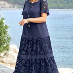 Kalina | Robe maxi en dentelle bleu marine